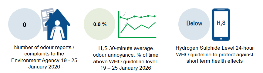 It is important to note that there will always be short-term fluctuations in the concentrations of any H2S leaving the site, especially given the low concentrations we are monitoring. The causes can include factors such as the impact of works being carried out on site, and changes in the weather.