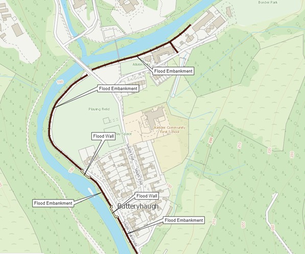 2. What would a flood map of Butteryhaugh look like without flood defences?