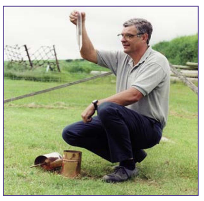 Observer reading the rain measure at eye level. Image copyright Met officending part of the Environment Agency’s (EA) overall rain gauge network that is delivered in conjunction with the Met Office (MO).
