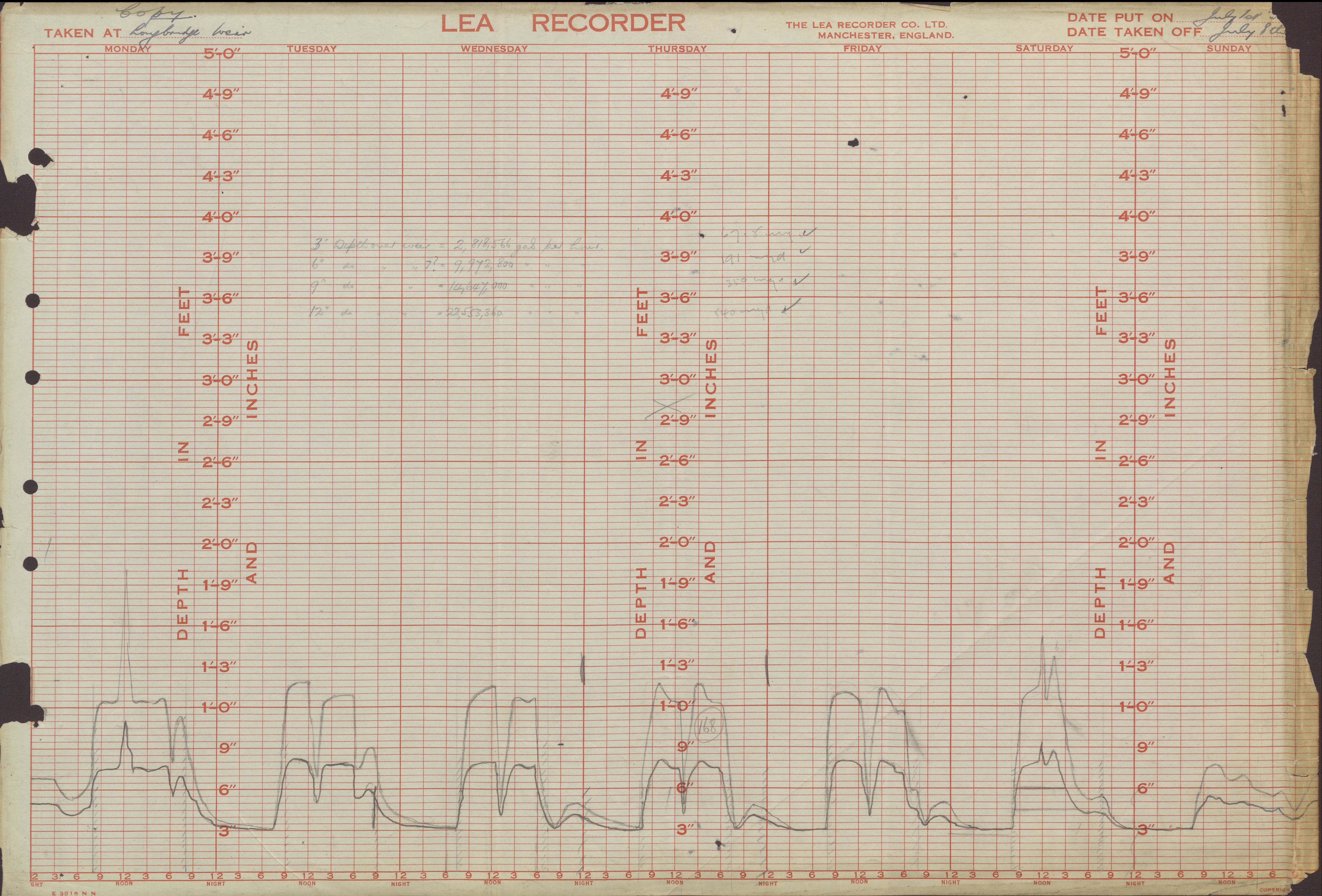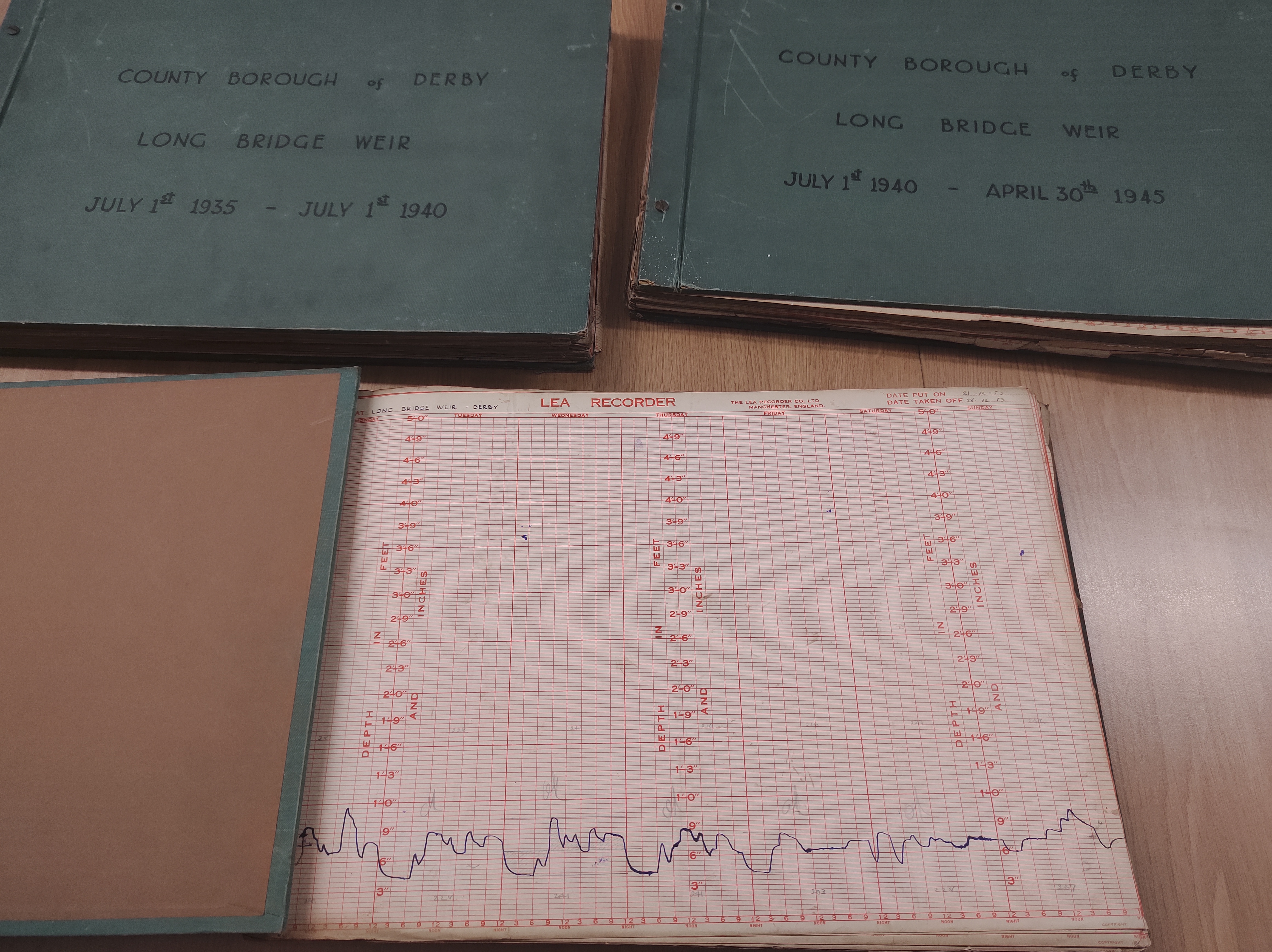 What is this duplex trace recording at Long Bridge Weir, River Derwent, Derby? Is it measuring above and below a weir, a secondary channel, movement/subsidence in the gauging station, flow and level, or none of the above? It would be great to hear your thoughts.