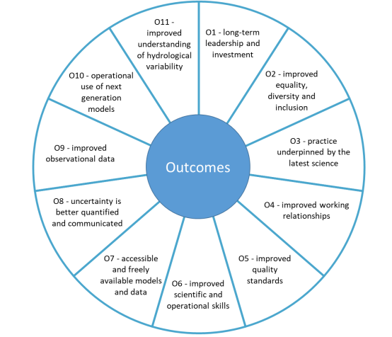 The UK’s Flood Hydrology Roadmap is working to realise 11 outcomes by the mid-2040s. Phase 1 of the EAM7 project will directly contribute to outcomes O3, O5, O6, O8, and O10.