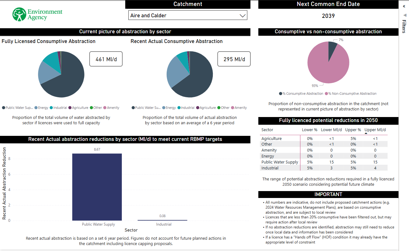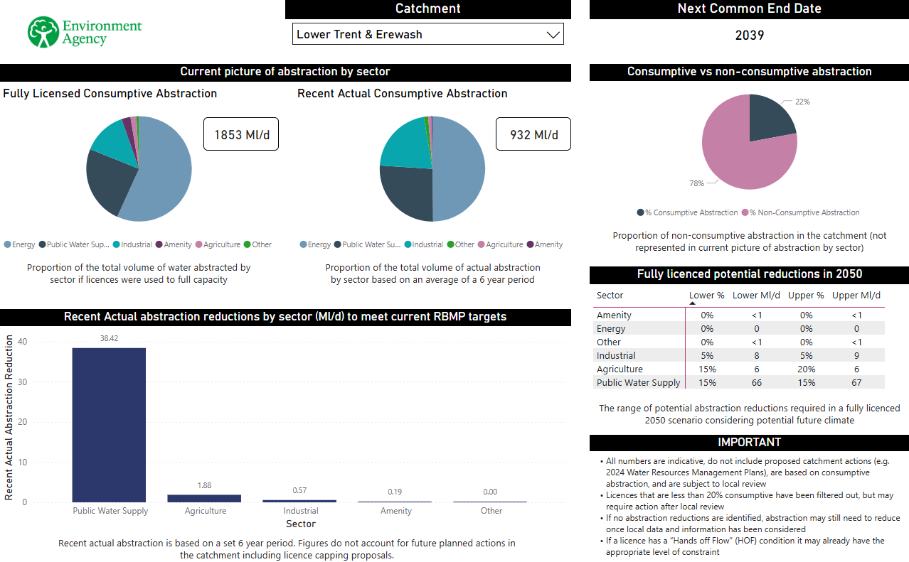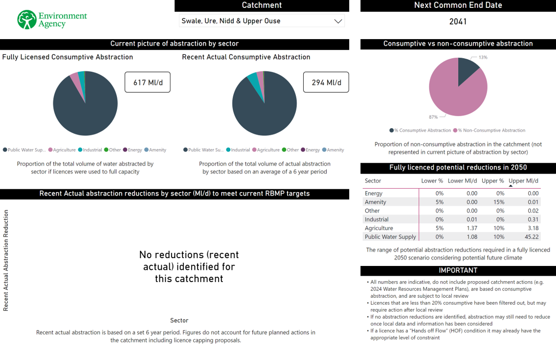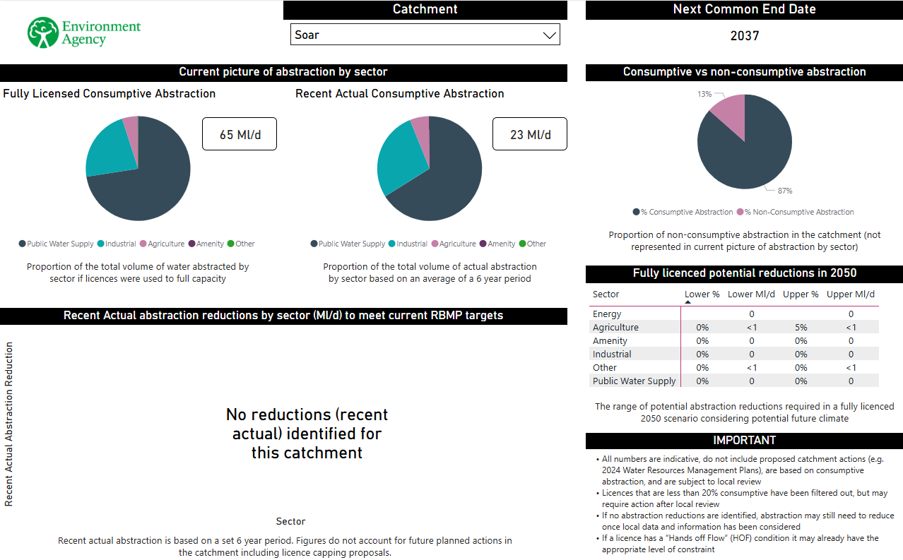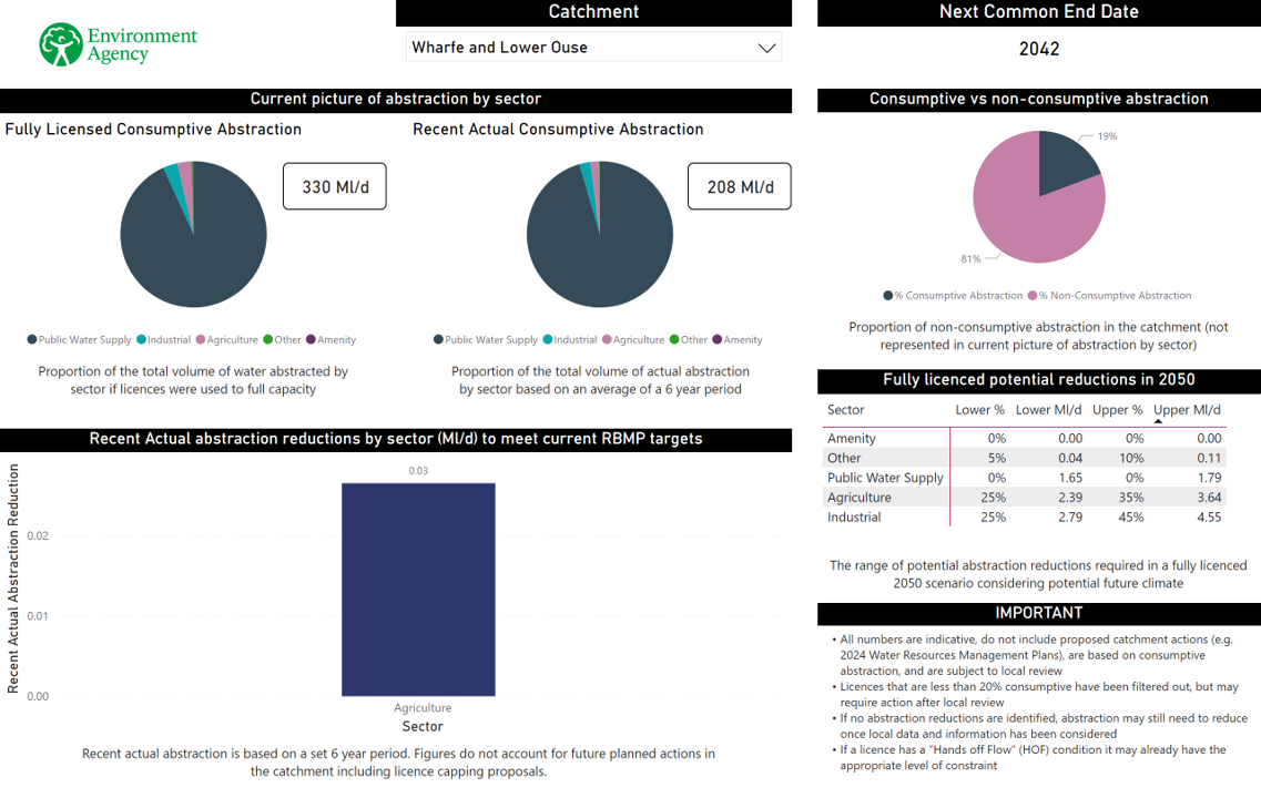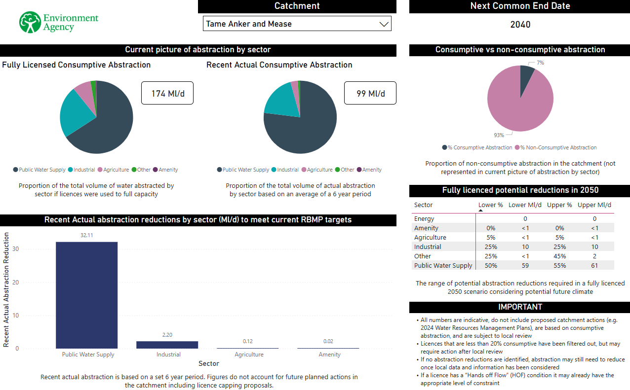 - All numbers are indicative, do not include proposed catchment actions (e.g. 2024 Water Resources Management Plans), are based on consumptive abstraction, and are subject to local review