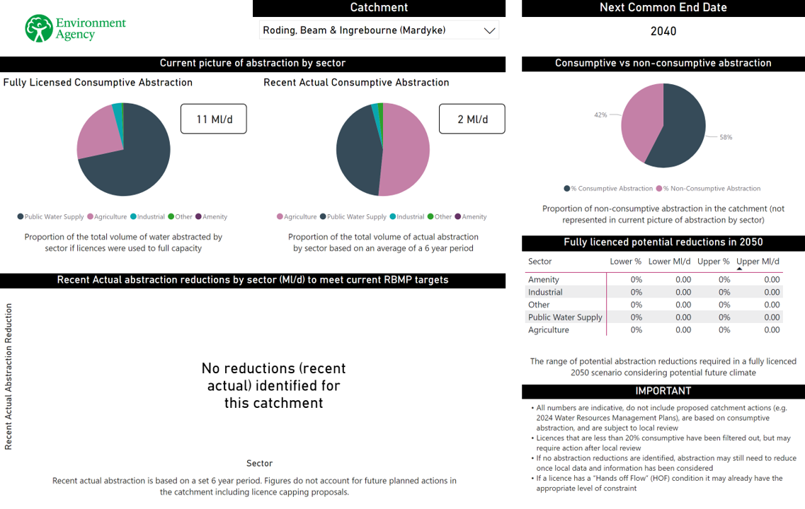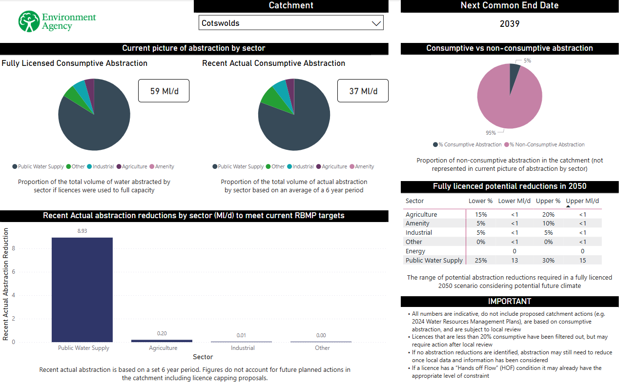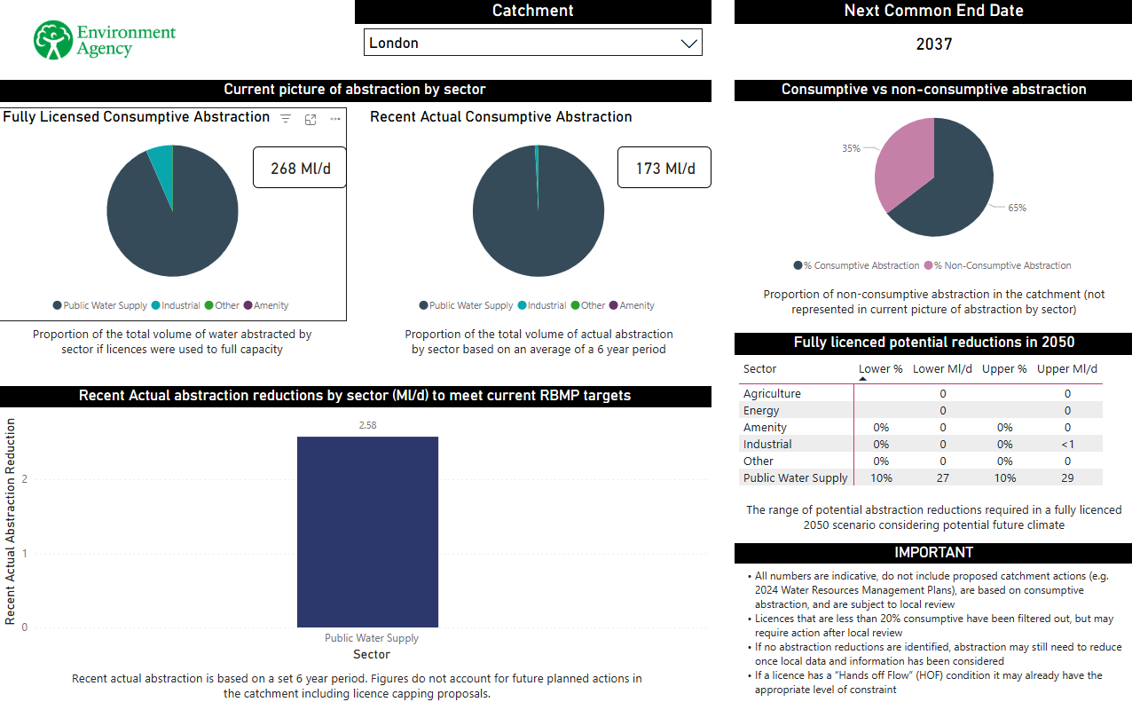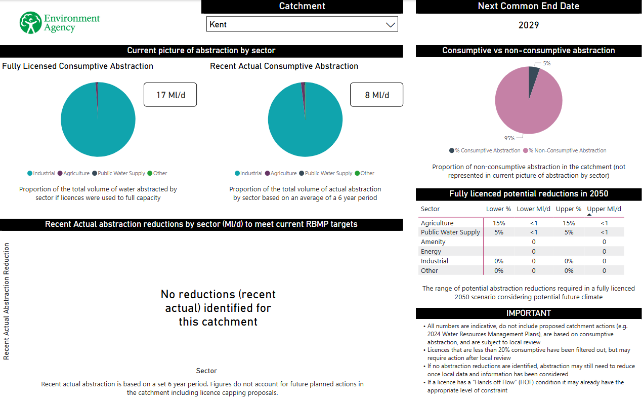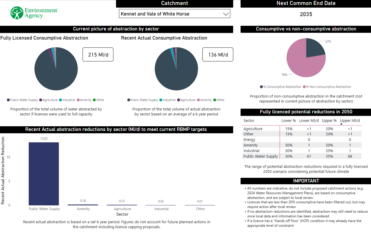 - All numbers are indicative, do not include proposed catchment actions (e.g. 2024 Water Resources Management Plans), are based on consumptive abstraction, and are subject to local review