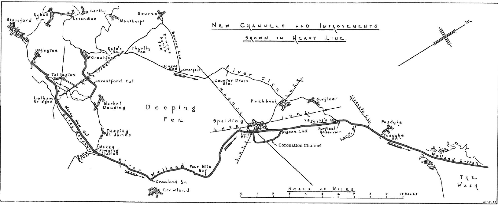 Map produced in the 1950's showing the extent of the River Welland Major Improvement Scheme