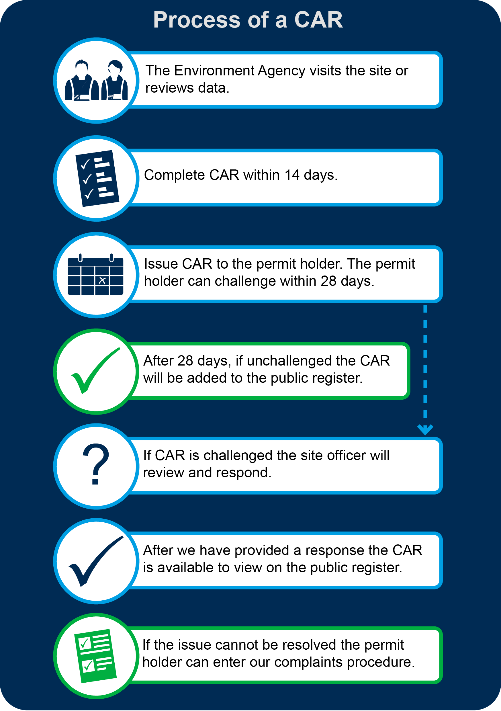 The risk category and score we give is usually the most severe non-compliance we have identified. For example, if under one permit condition we identify 3 risk category 3 non-compliances, and 1 risk category 2 non-compliance, then we would record all the non-compliances on the CAR form. However we would only award 1 risk category 2 non-compliance, and score under the relevant permit condition and most appropriate sub-criteria on the CAR form.