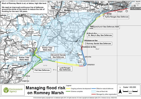 Several flood defence schemes around Romney Marsh have already been completed at a value of £130 million. These include: