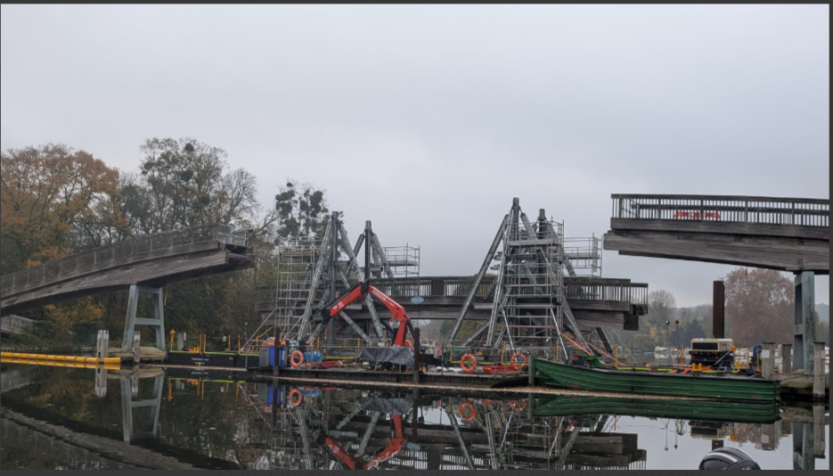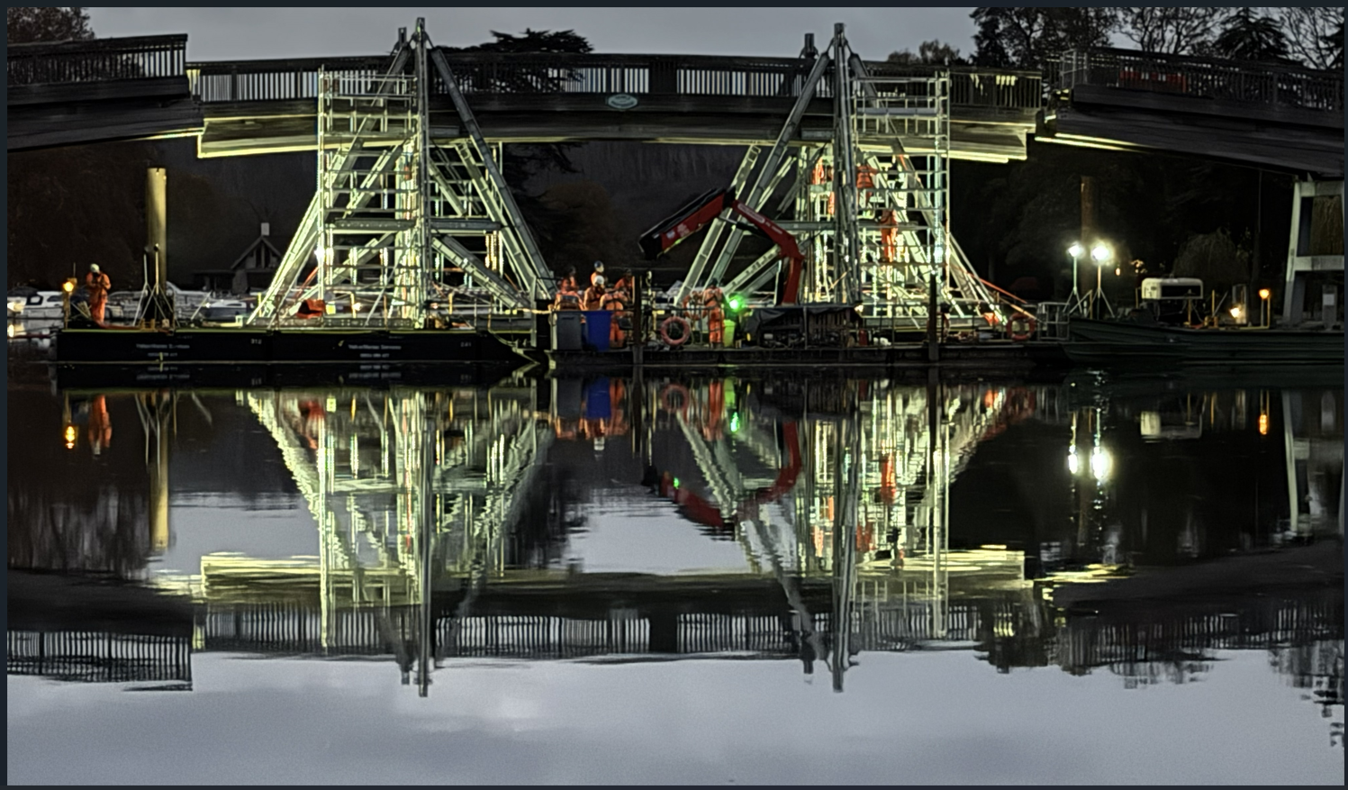 They constructed the bridge lifting assemblies on the floating pontoon throughout the early part of the week and then carried out a successful test lift of the centre span on Thursday 8 November 2025. As the test lift went well, they decided to continue with the main lift to remove the centre span. This carefully controlled process included incrementally jacking the section upwards whilst ensuring it was not snagging on the outer spans. The central span was finally fully disconnected from the outer spans after a 9-hour seamless operation.