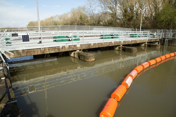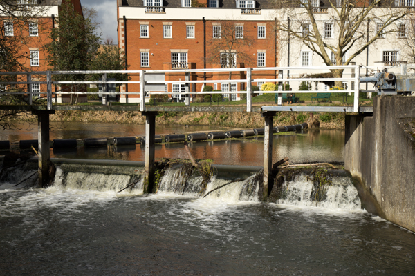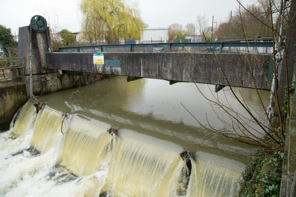 These are owned and operated by the Environment Agency and were installed during the construction of the River Ember channel for amenity and recreation purposes. The gates remain closed on a day-to-day basis to retain a steady water level, but in times of high flow, they are opened to allow the water to pass.
